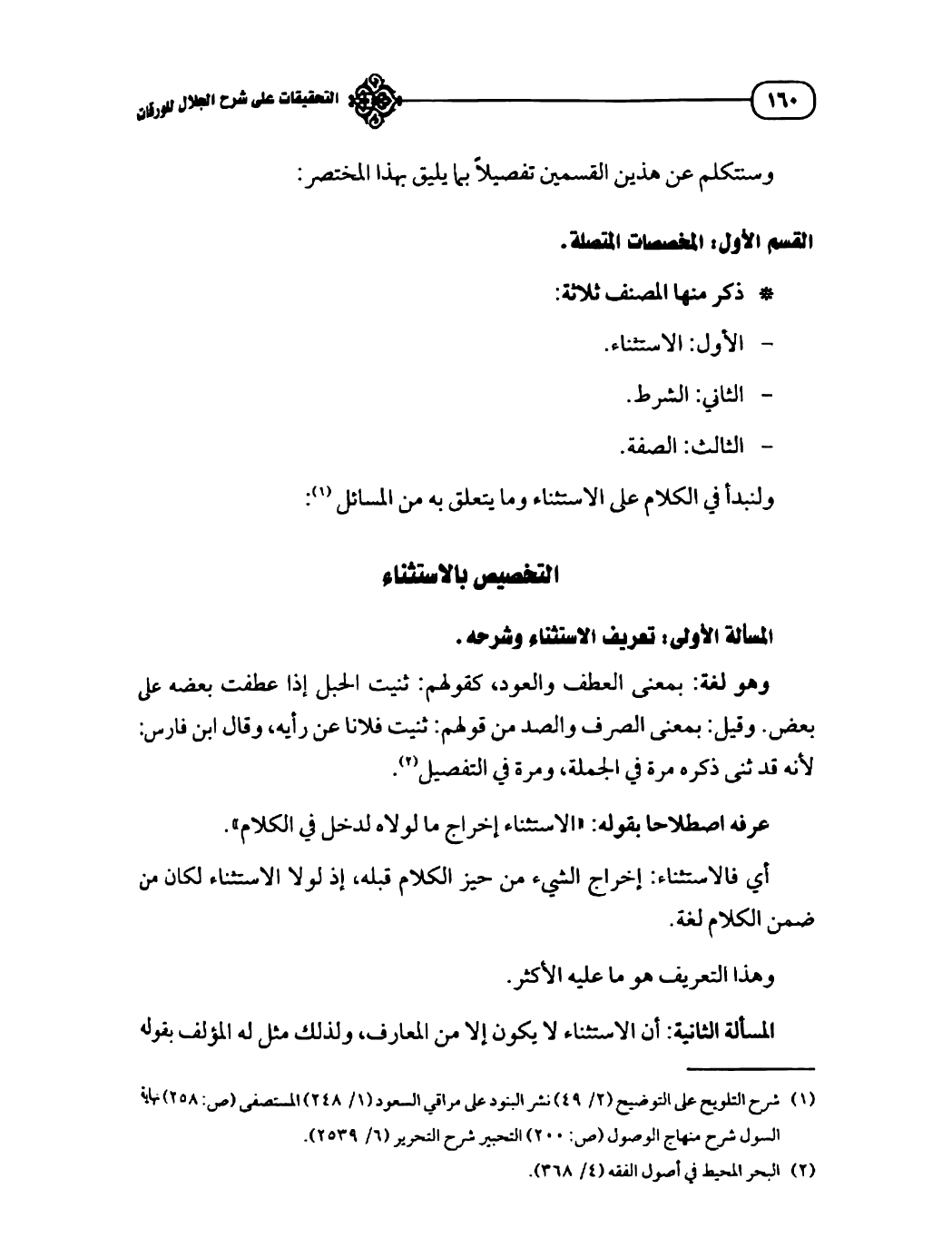 المسألة الأولى: تعريف الاستثناء وشرحه.