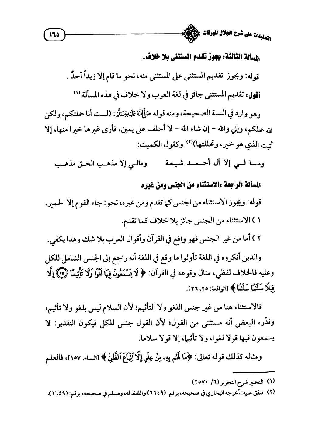 المسألة الرابعة: الاستثناء من الجنس ومن غيره