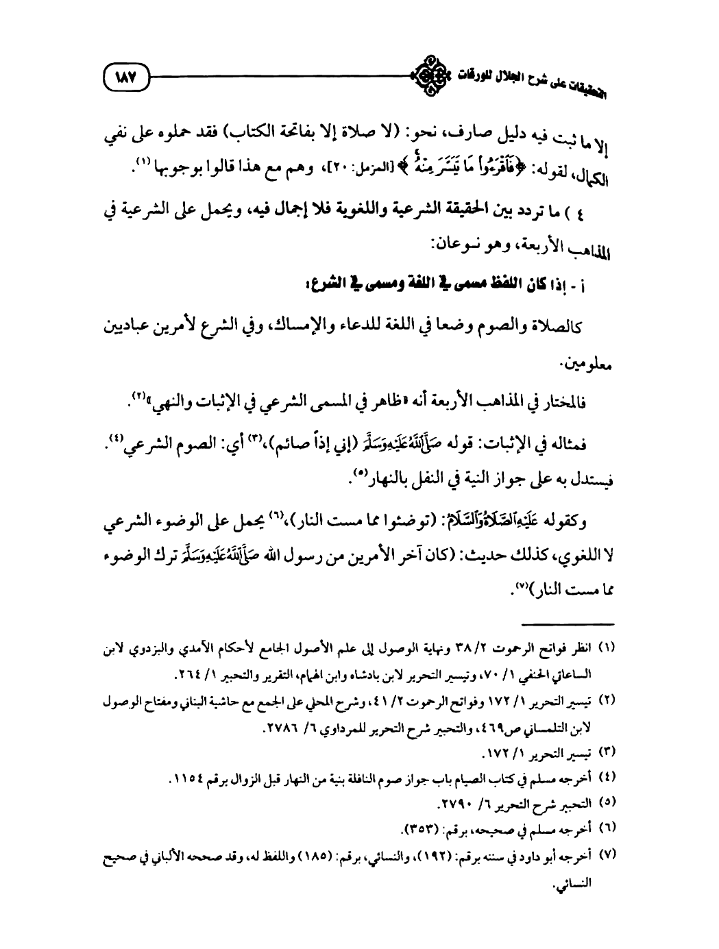 (¬١) انظر فواتح الرحموت ٢/ ٣٨ ونهاية الوصول إلى علم الأصول الجامع لأحكام الآمدي والبزدوي لابن الساعاتي الحنفي ١/ ٧٠، وتيسير التحرير لابن بادشاه وابن الهمام، التقرير والتحيير ١/ ٢٦٤.