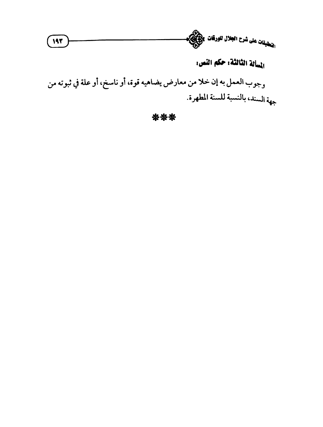 وجوب العمل به إن خلا من معارض يضاهيه قوة، أو ناسخ، أو علة في ثبوته من جهة السند، بالنسبة للسنة المطهرة.