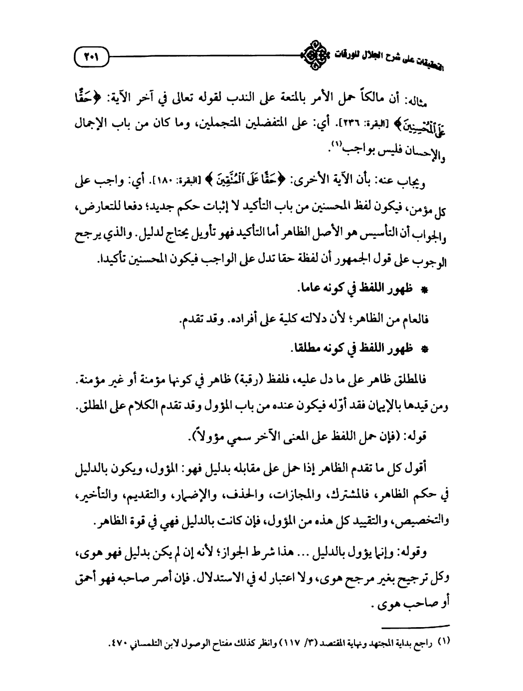 (¬١) راجع بداية المجتهد ونهاية المقتصد (٣/ ١١٧) وانظر كذلك مفتاح الوصول لابن التلمساني ٤٧٠.