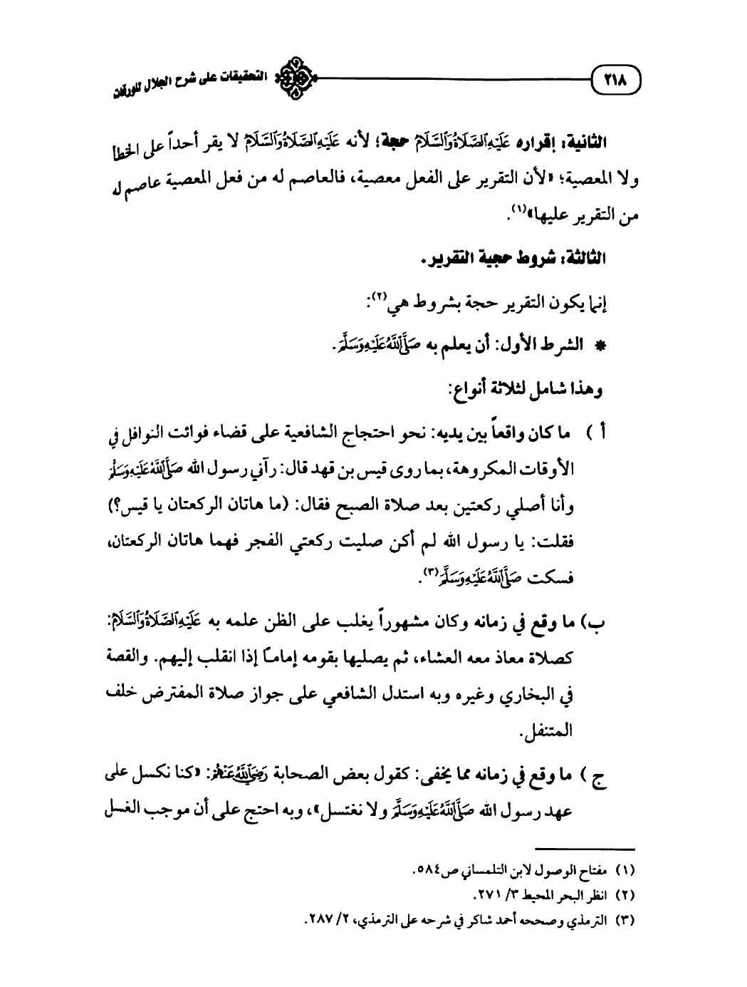 إنما يكون التقرير حجة بشروط هي (¬٢):