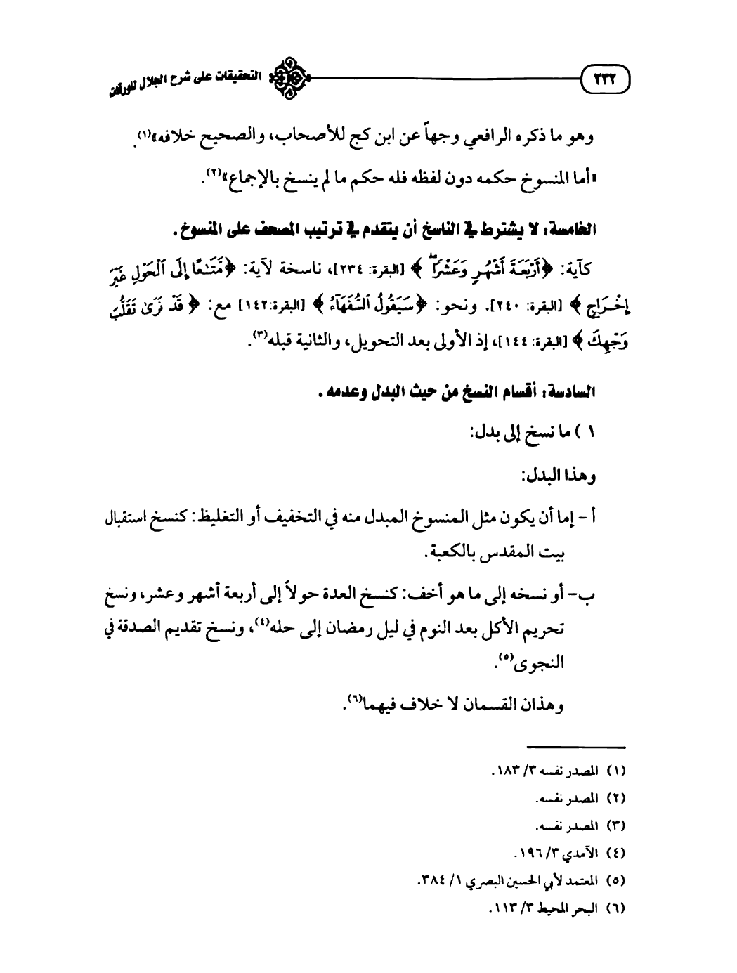 السادسة: أقسام النسخ من حيث البدل وعدمه.