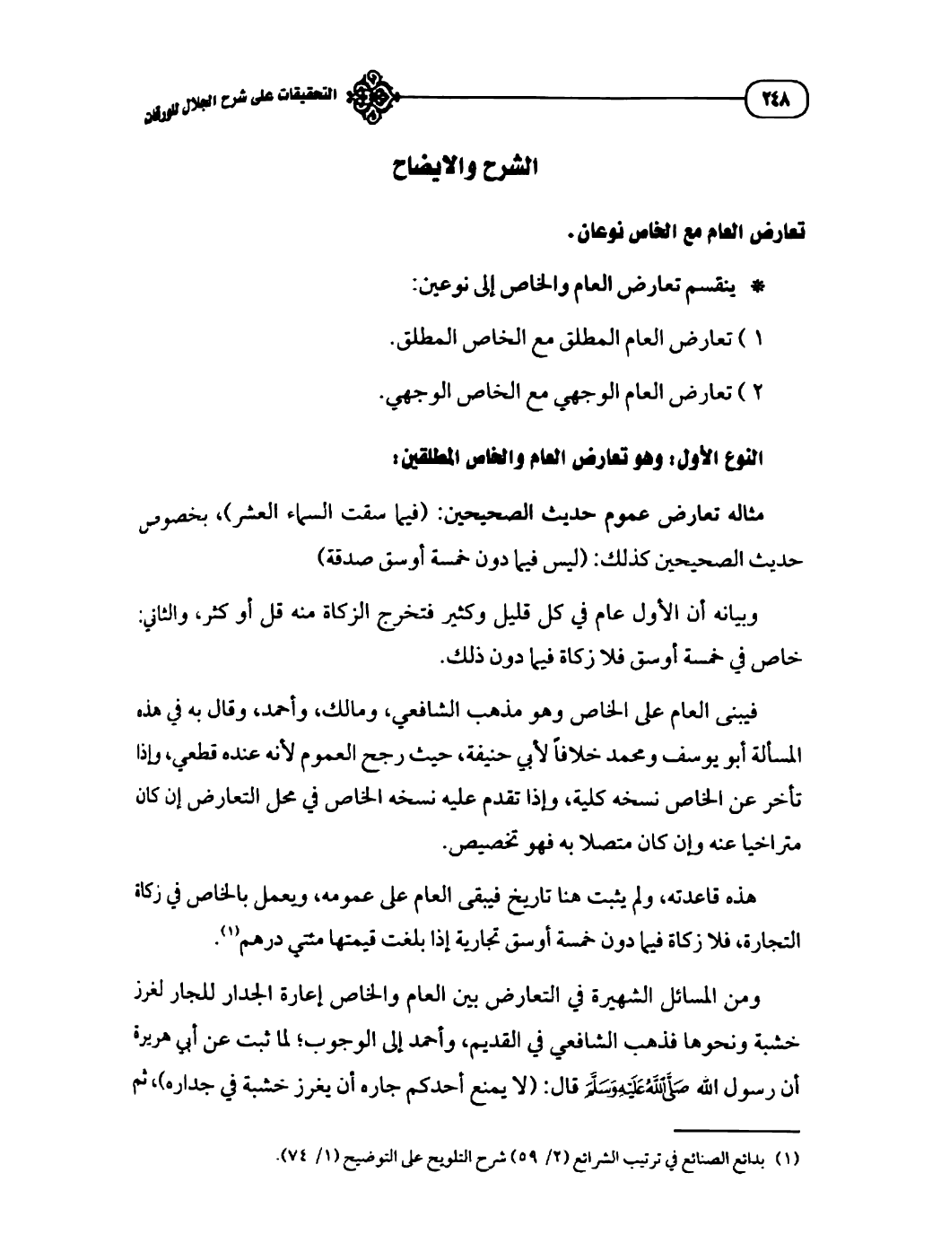 (¬١) بدائع الصنائع في ترتيب الشرائع (٢/ ٥٩) شرح التلويح على التوضيح (١/ ٧٤).