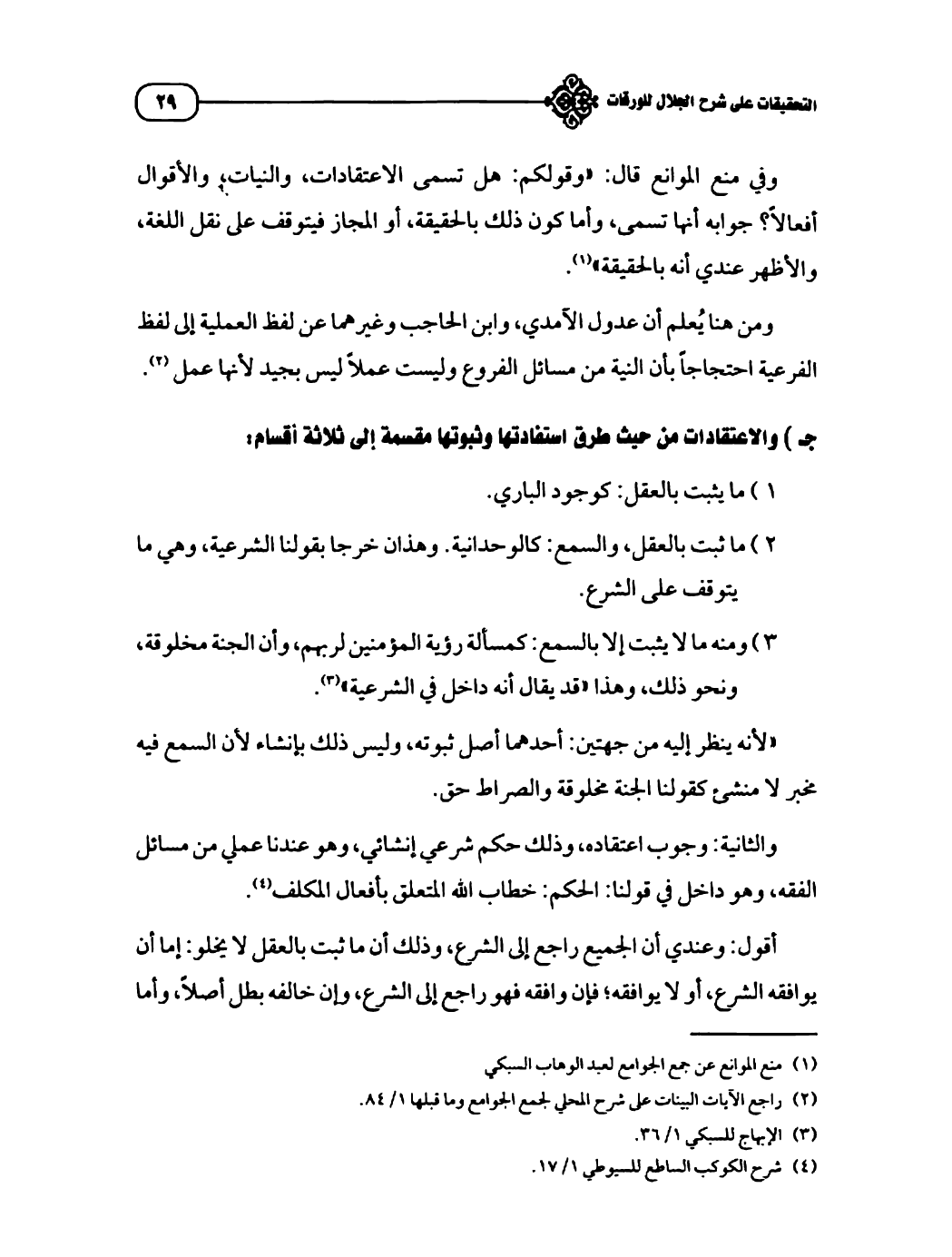 (¬٢) راجع الآيات البينات على شرح المحلي لجمع الجوامع وما قبلها ١/ ٨٤.