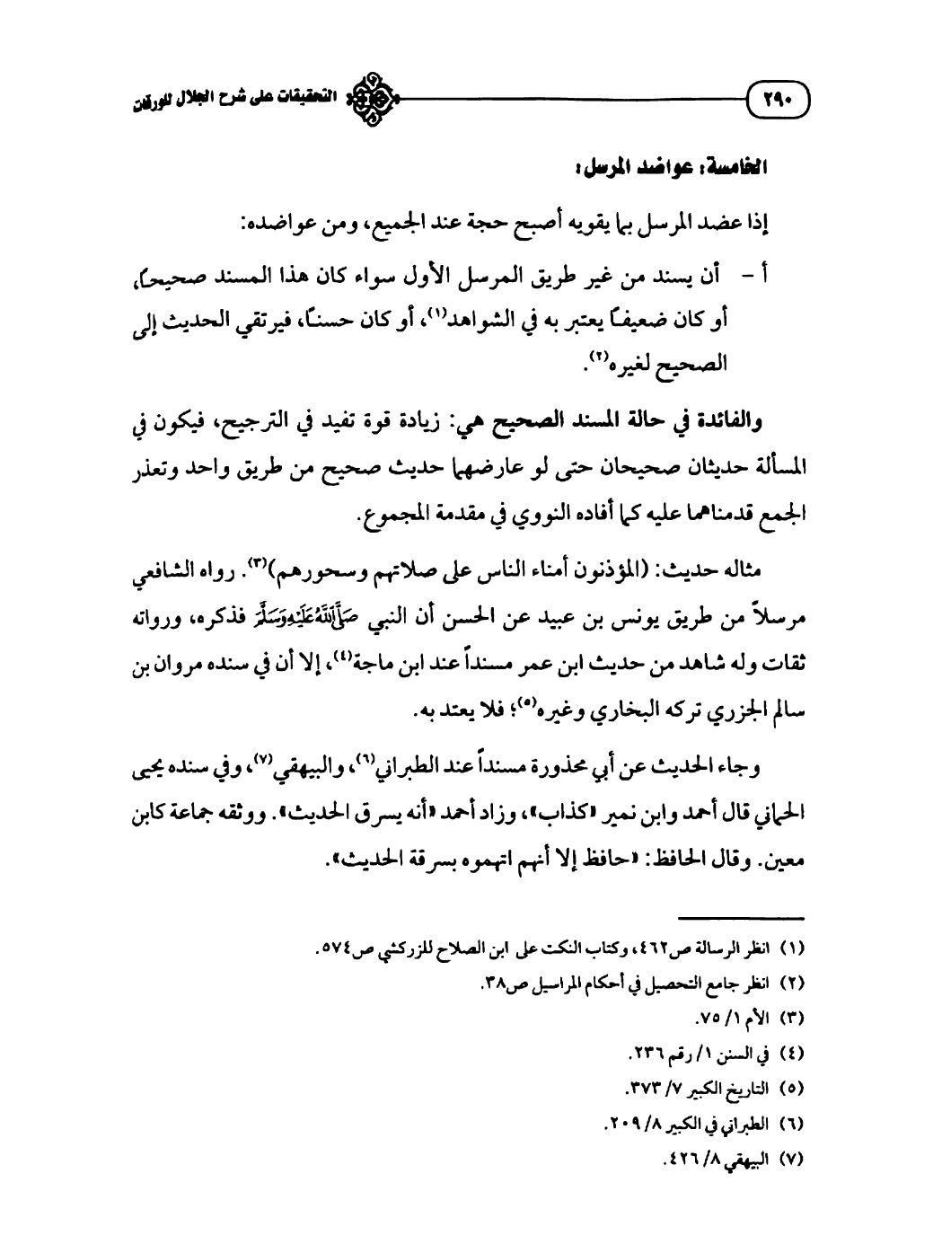 إذا عضد المرسل بما يقويه أصبح حجة عند الجميع، ومن عواضده: