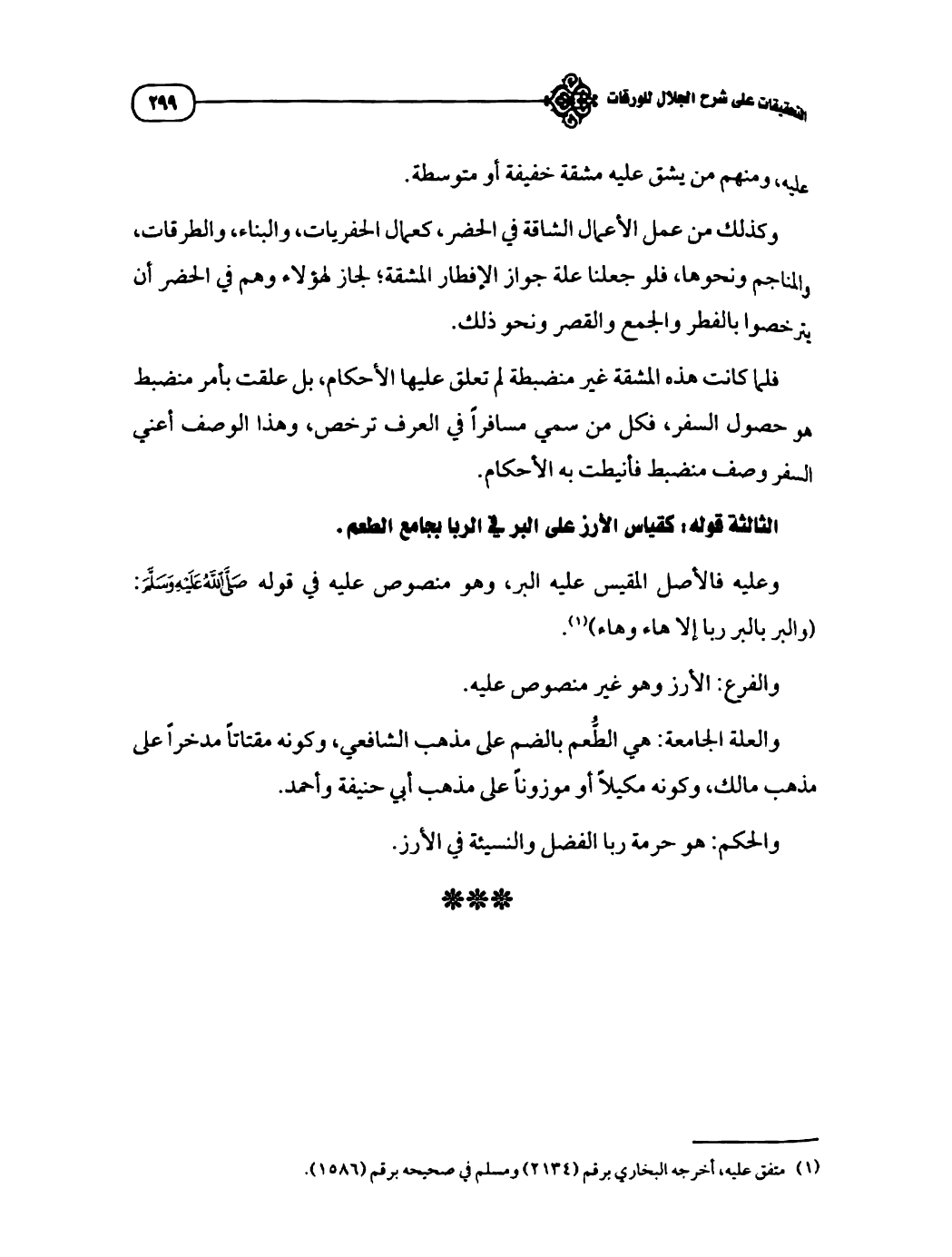 والفرع: الأرز وهو غير منصوص عليه.