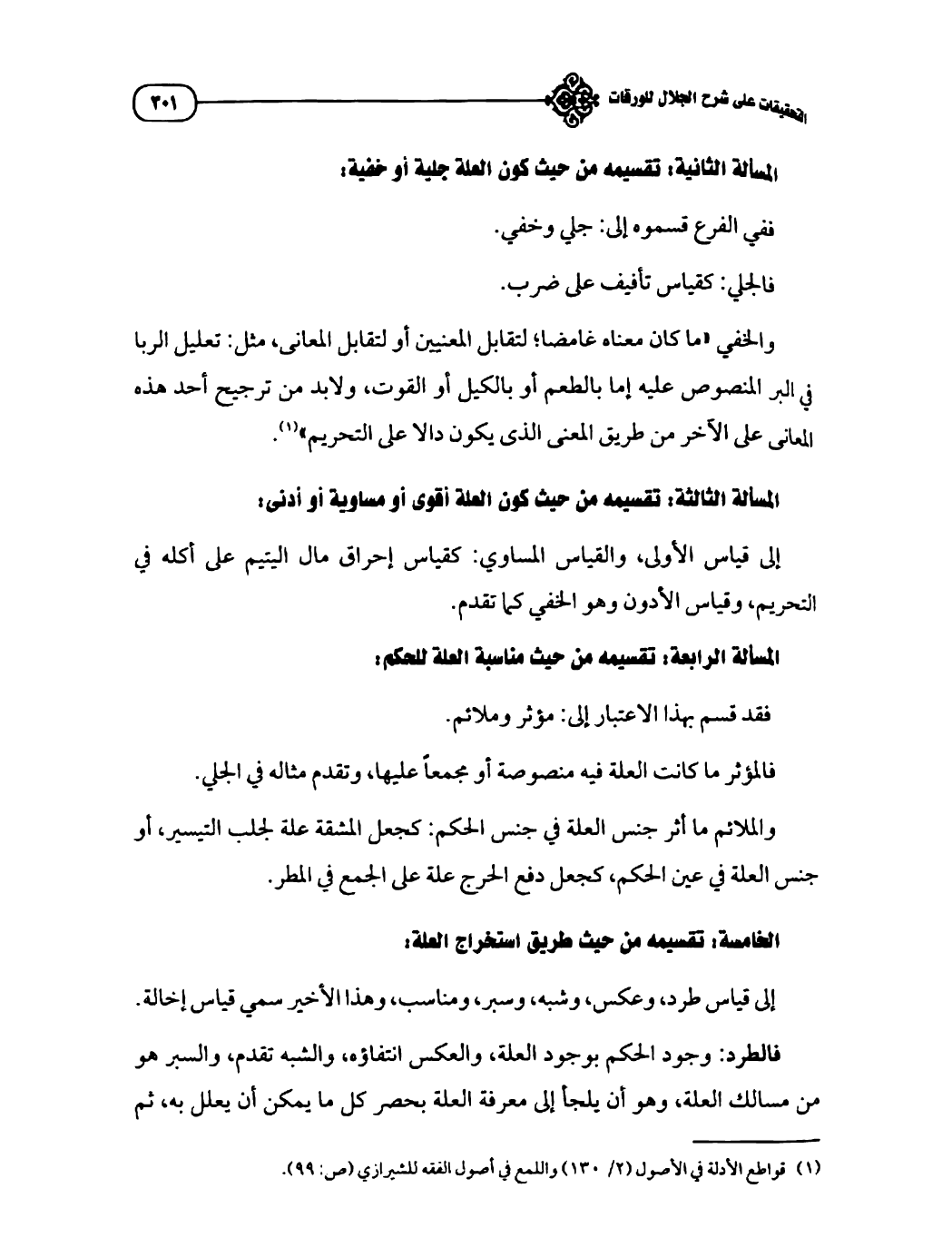 المسألة الثانية: تقسيمه من حيث كون العلة جلية أو خفية.