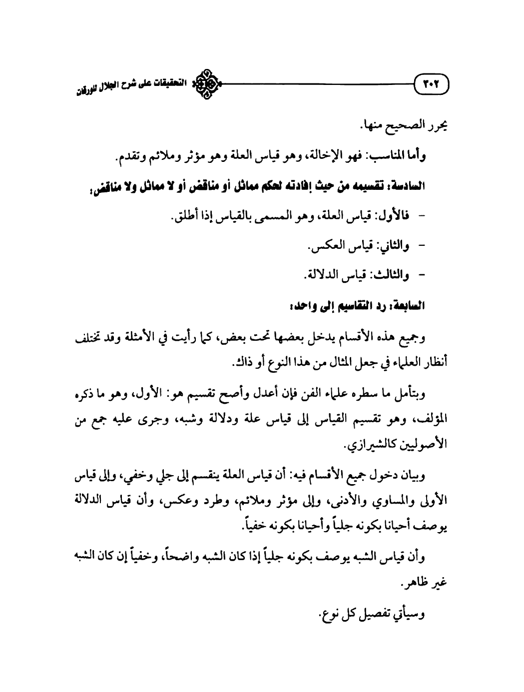 وبتأمل ما سطره علماء الفن فإن أعدل وأصح تقسيم هو: الأول، وهو ما ذكره المؤلف، وهو تقسيم القياس إلى قياس علة ودلالة وشبه، وجرى عليه جمع من الأصوليين كالشيرازي.