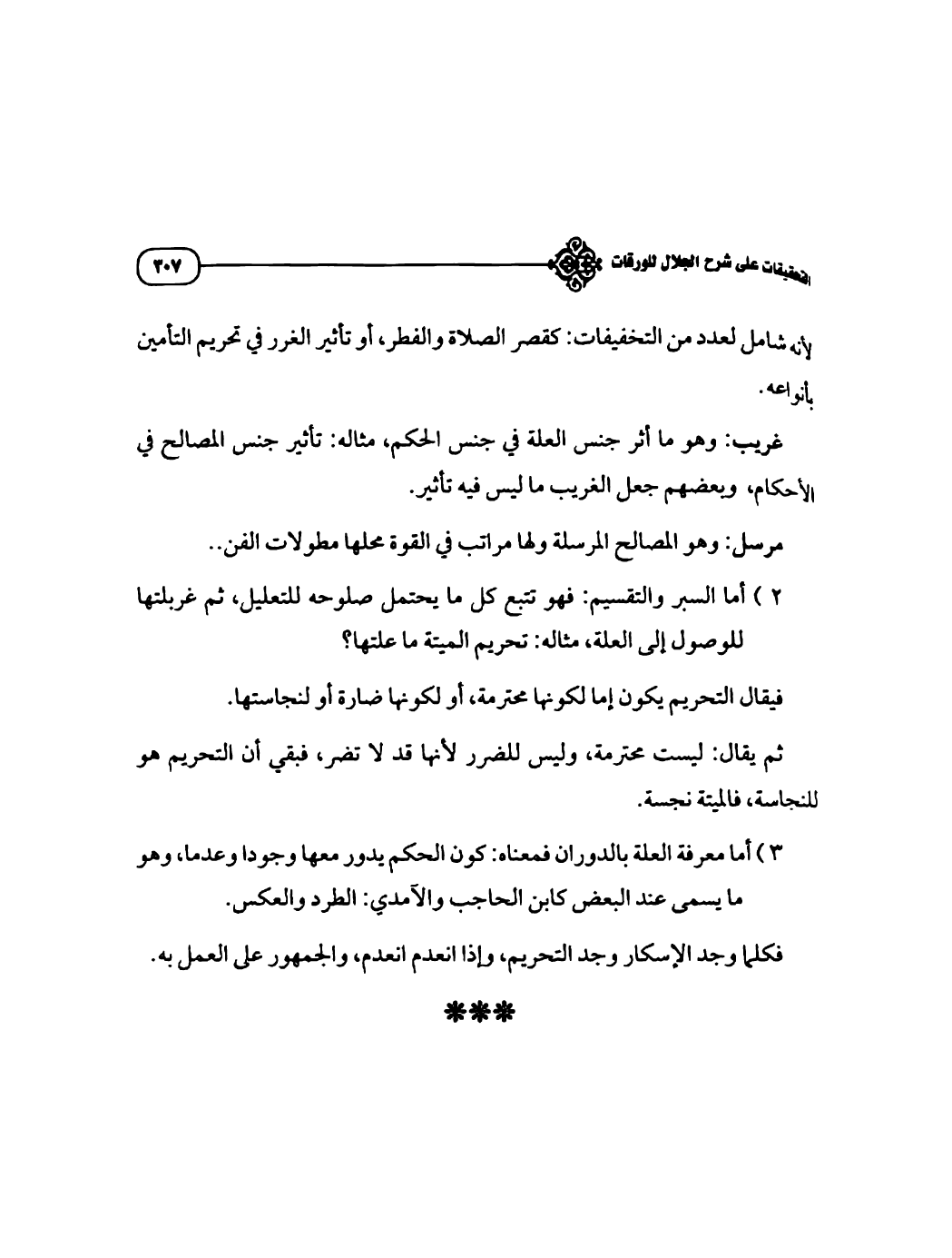 ٢_ أما السبر والتقسيم: فهو تتبع كل ما يحتمل صلوحه للتعليل، ثم غربلتها للوصول إلى العلة، مثاله: تحريم الميتة ما علتها؟