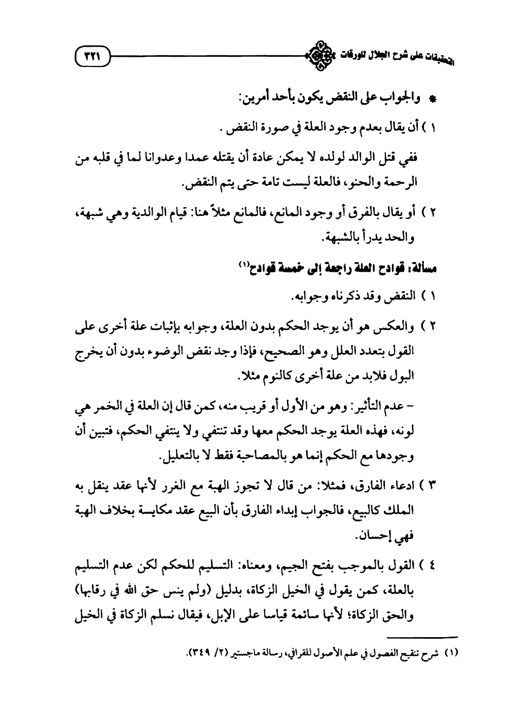(¬١) شرح تنقيح الفصول في علم الأصول للقرافي، رسالة ماجستير (٢/ ٣٤٩).