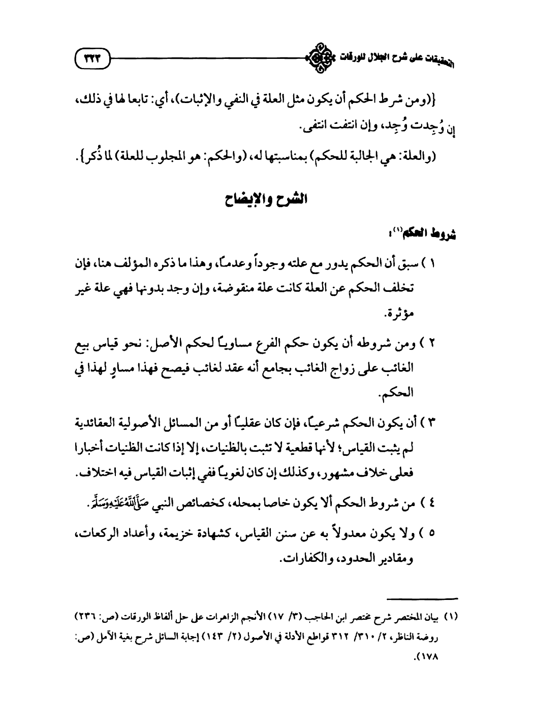 ومن شرط الحكم أن يكون مثل العلة في النفي والإثبات، أي: تابعاً لها في ذلك إن وجدت وجد وإن انتفت انتفى.
