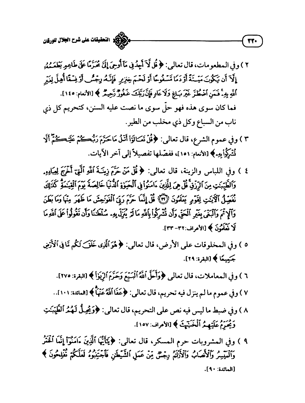 ٨_ وفي ضبط ما ليس فيه نص على التحريم، قال تعالى: {وَيُحِلُّ لَهُمُ الطَّيِّبَاتِ وَيُحَرِّمُ عَلَيْهِمُ الْخَبَائِثَ} [الأعراف: ١٥٧].