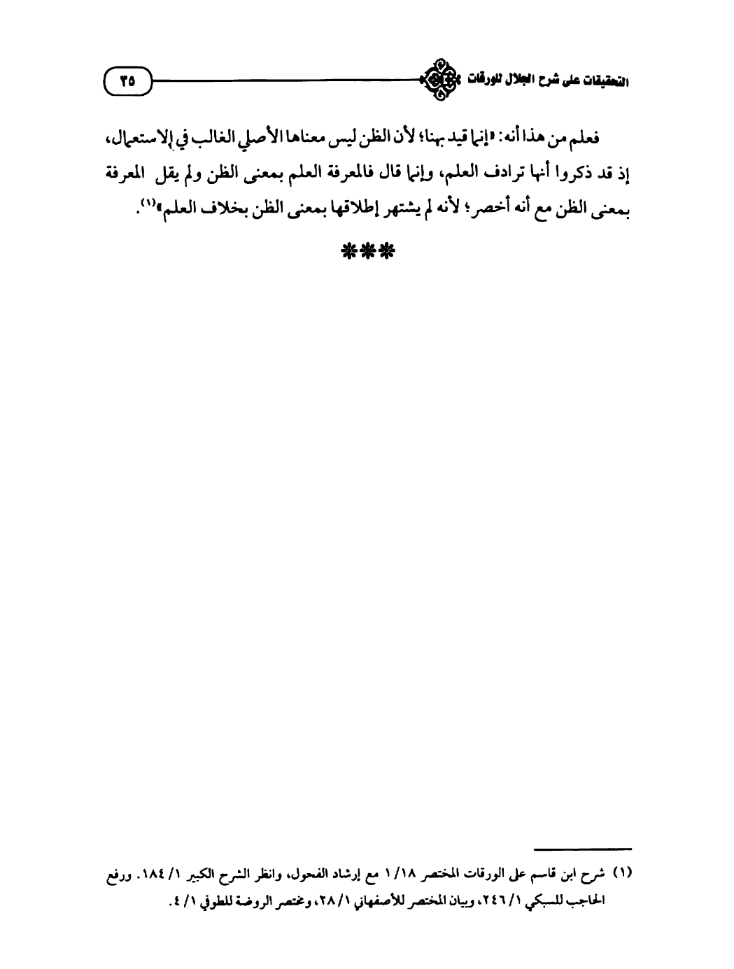 (¬١) شرح بن قاسم على الورقات المختصر ١٨/ ١ مع ارشاد الفحول، وانظر الشرح الكبير ١/ ١٨٤. ورفع الحاجب للسبكي ١/ ٢٤٦، وبيان المختصر للأصفهاني ١/ ٢٨، ومختصر الروضة للطوفي ١/ ٤.