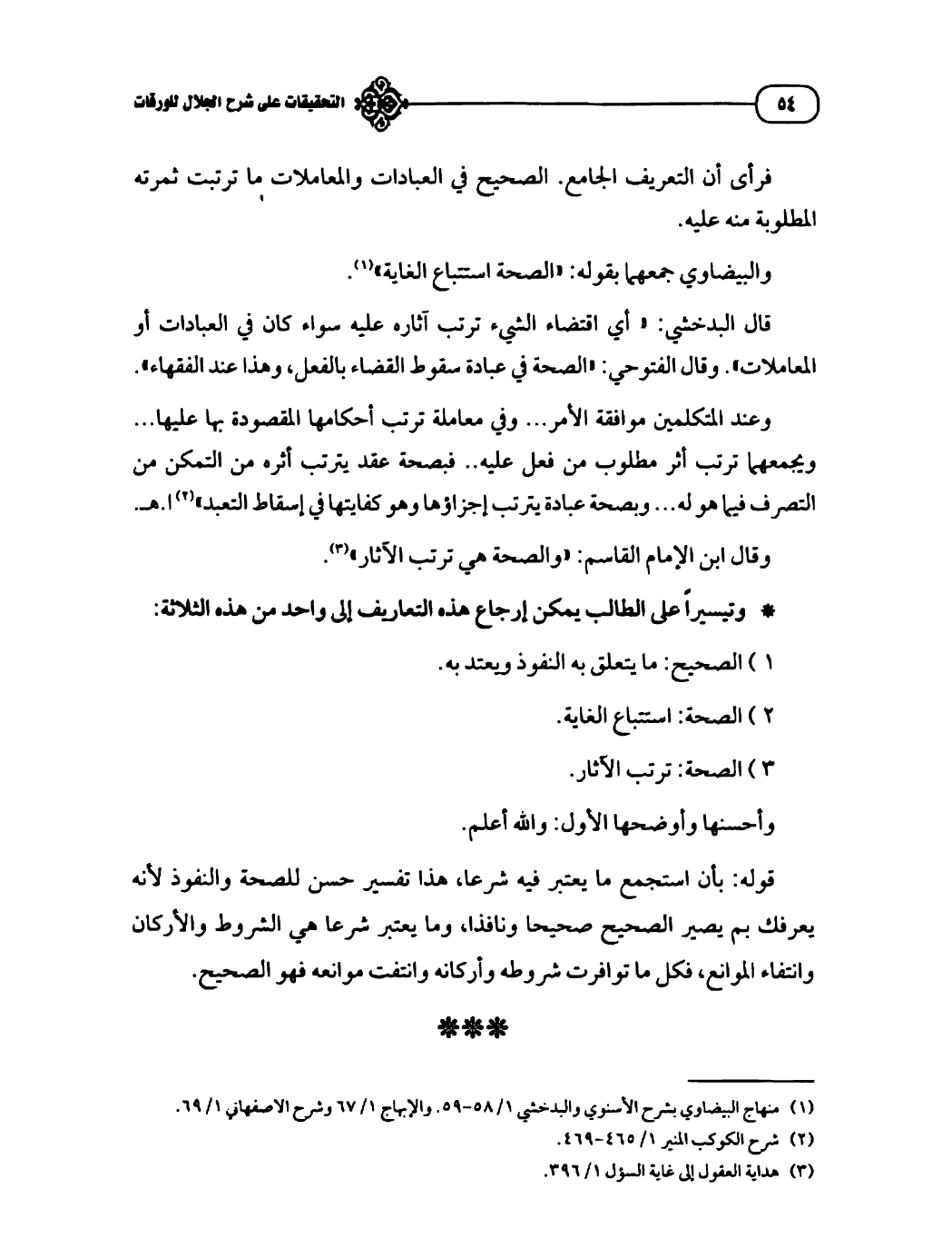 فرأى أن التعريف الجامع. الصحيح في العبادات والمعاملات ما ترتبت ثمرته المطلوبة منه عليه.