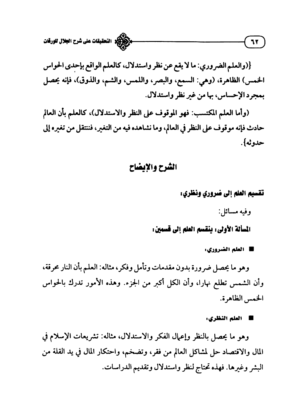 تقسيم العلم إلى ضروري ونظري: