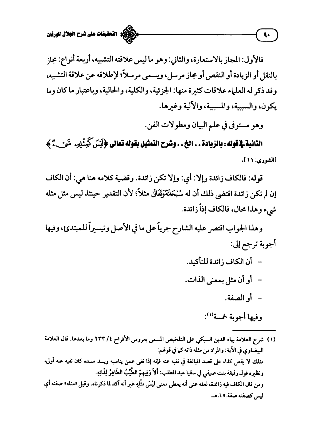 (¬١) شرح العلامة بهاء الدين السبكي على التلخيص المسمى بعروس الأفراح ٤/ ٢٣٣ وما بعدها. قال العلامة البيضاوي في الآية: والمراد من مثله ذاته كما في قولهم: