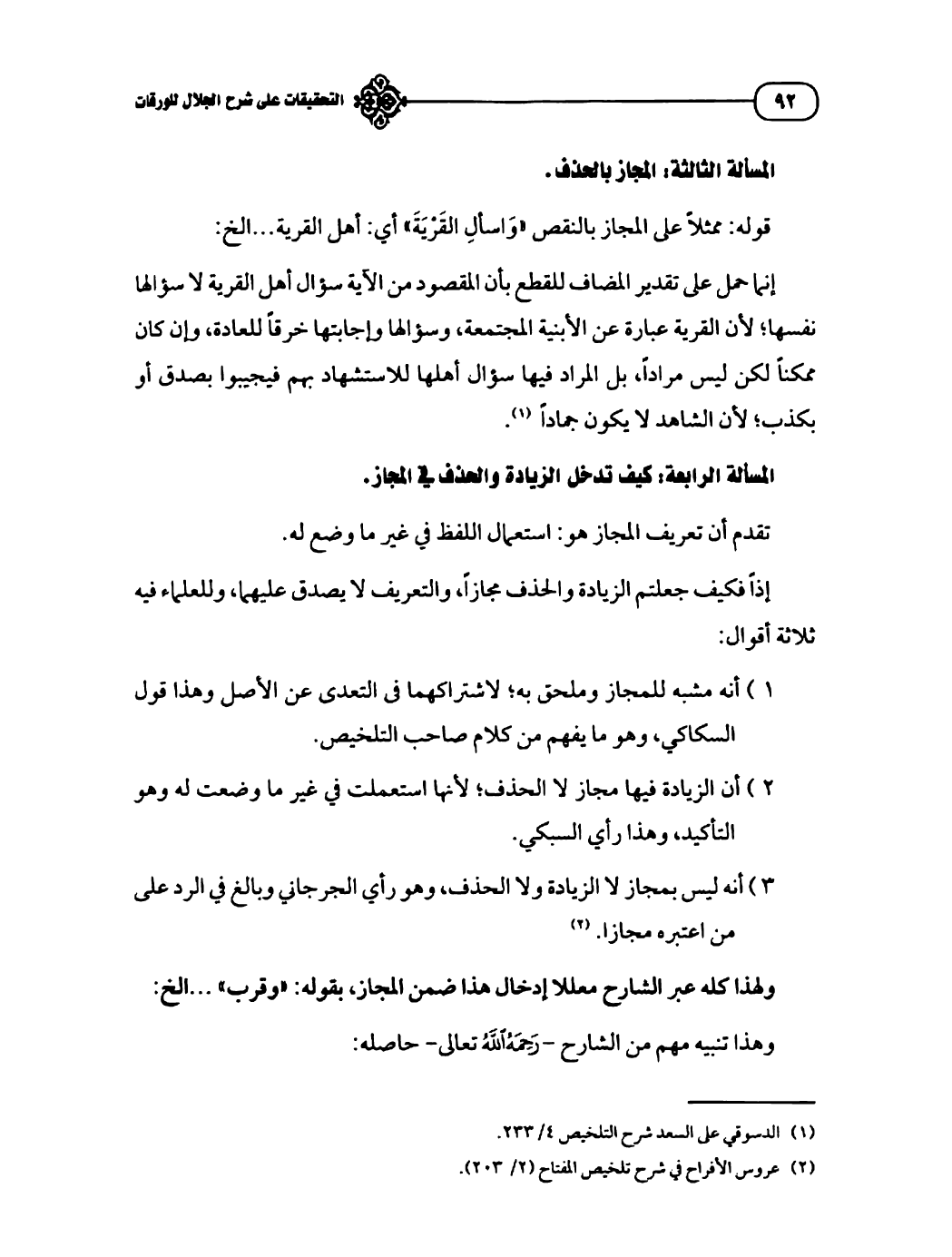 (¬٢) عروس الأفراح في شرح تلخيص المفتاح (٢/ ٢٠٣).