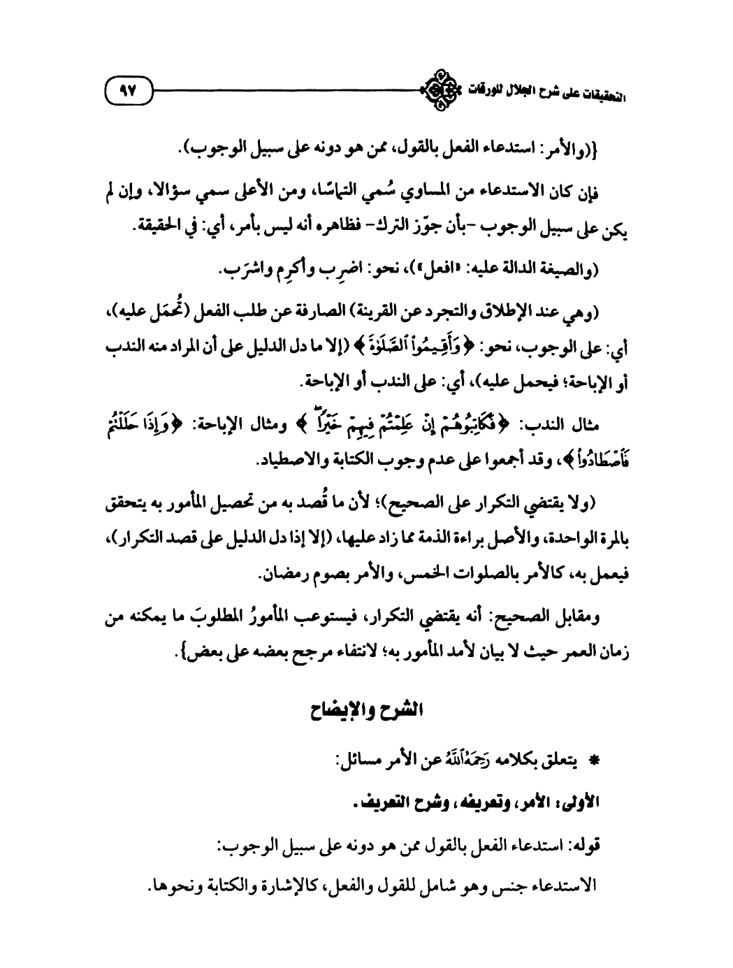 يتعلق بكلامه رحمه الله عن الأمر مسائل: