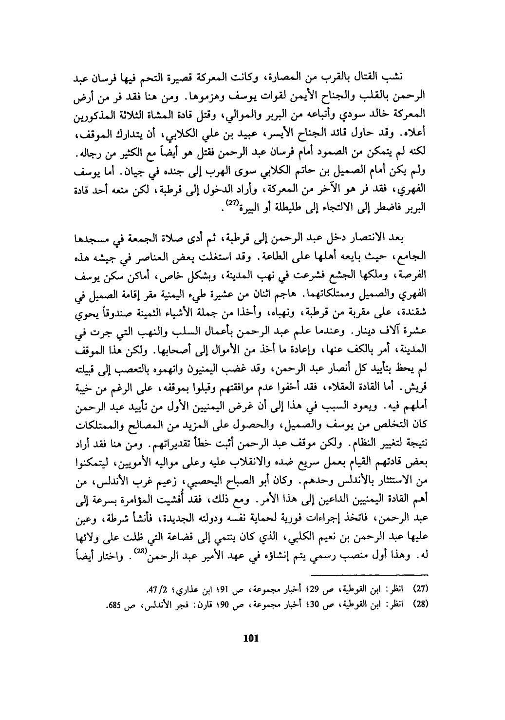 (¬27) انظر: ابن القوطية، ص 29، أخبار مجموعة، ص 91؛ ابن عذاري؛ 2/ 47.