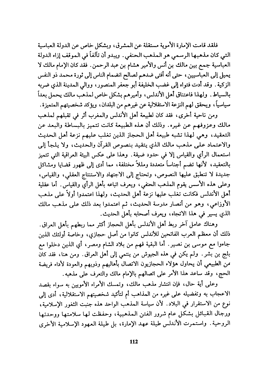 وهناك عامل آخر ربط أهل الأندلس بأهل الحجاز أكثر مما ربطهم بأهل العراق.
