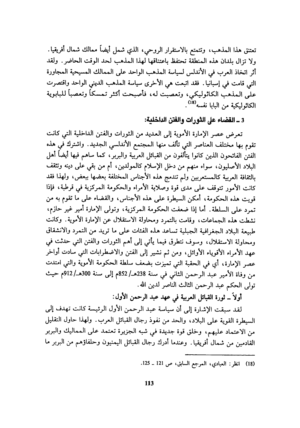 أولاً - ثورة القبائل العربية في عهد عبد الرحمن الأول:
