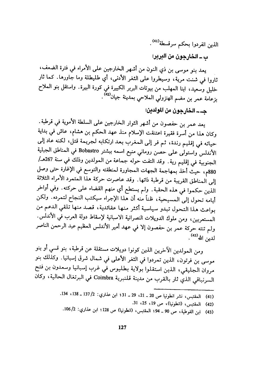 (¬41) المقتبس، نشر انطونيا: ص 20 - 21، 29 - 31؛ ابن عذاري: 2/ 137 - 138، 134.