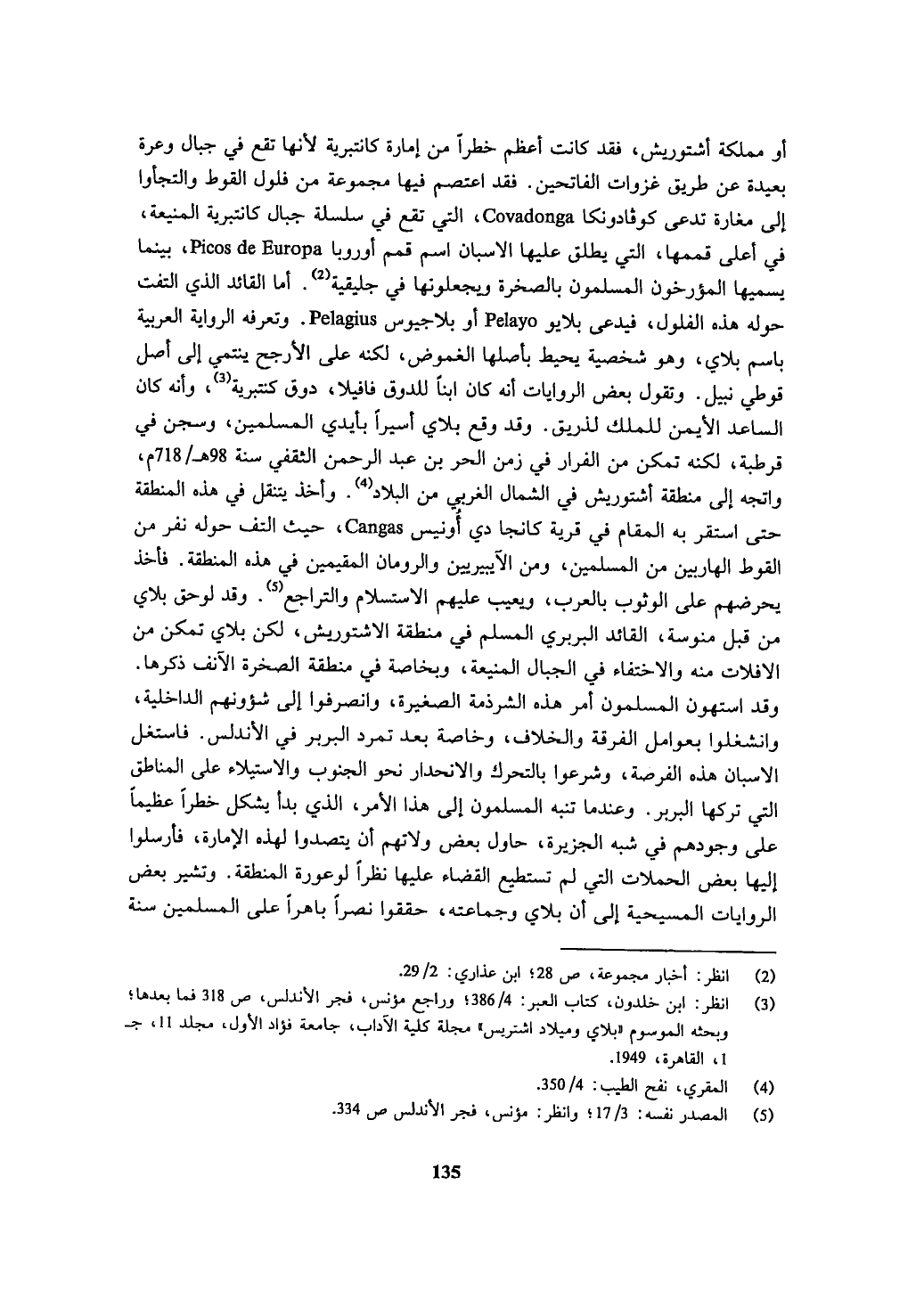 (¬3) انظر: ابن خلدون، كتاب العبر: 4/ 386؛ وراجع مؤنس، فجر الأندلس، ص 318 فما بعدها؛ وبحثه الموسوم " بلاي وميلاد اشتريس " مجلة كلية الآداب، جامعة فؤاد الأول؛ مجلد 11، ج 1، القاهرة، 1949.