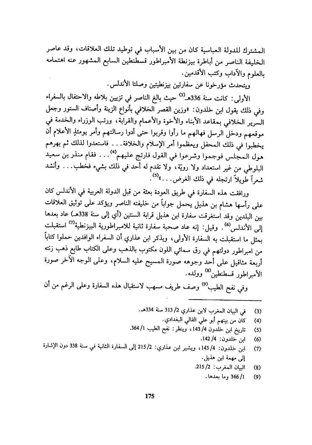 (¬7) ابن خلدون: 4/ 143، ويشير ابن عذاري: 2/ 215 إلى السفارة الثانية في سنة 338 دون الإشارة إلى مهمة ابن هذيل.