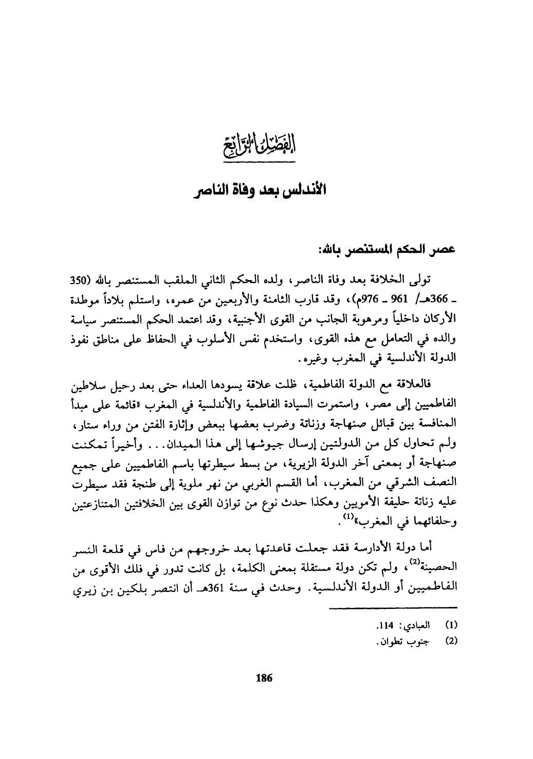 أما دولة الأدارسة فقد جعلت قاعدتها بعد خروجهم من فاس في قلعة النسر الحصينة (¬2)، ولم تكن دولة مستقلة بمعنى الكلمة، بل كانت تدور في فلك الأقوى من الفاطميين أو الدولة الأندلسية. وحدث في سنة 361 هـ أن انتصر بلكين بن زيري