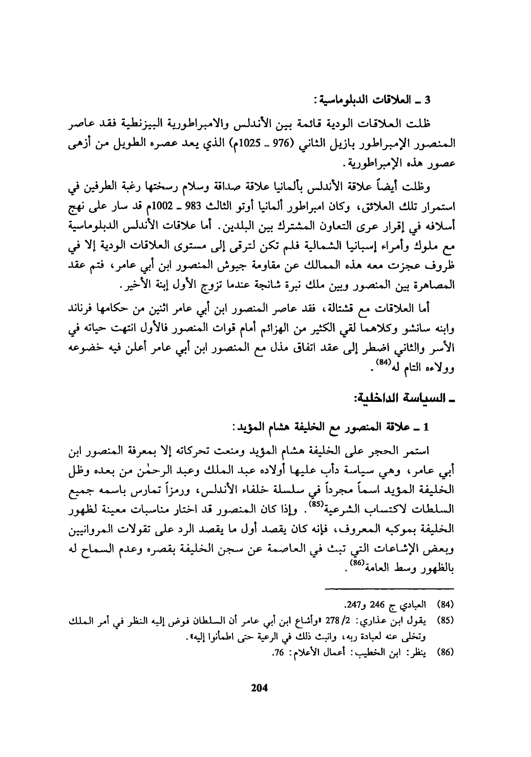 (¬85) يقول ابن عذاري: 2/ 278 " وأشاع ابن أبي عامر أن السلطان فوض إليه النظر في أمر الملك وتخلى عنه لعبادة ربه، وانبث ذلك في الرعية حتى اطمأنوا إليه ".