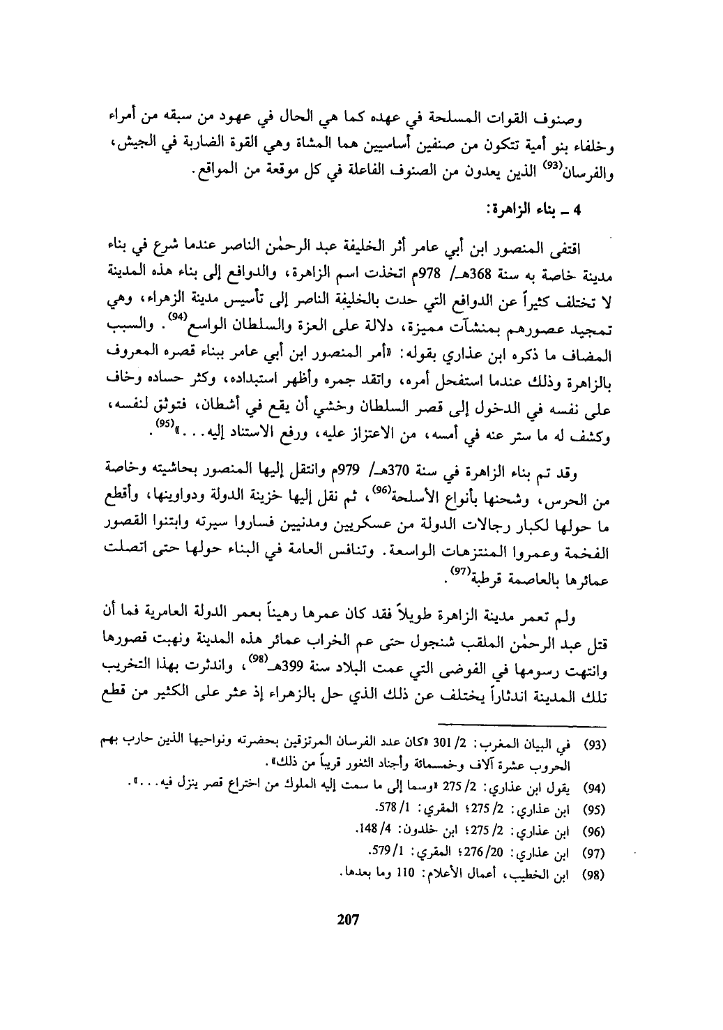 (¬93) في البيان المغرب: 2/ 301 " كان عدد الفرسان المرتزقين بحضرته ونواحيها الذين حارب بهم الحروب عشرة آلاف وخمسمائة وأجناد الثغور قريباً من ذلك ".