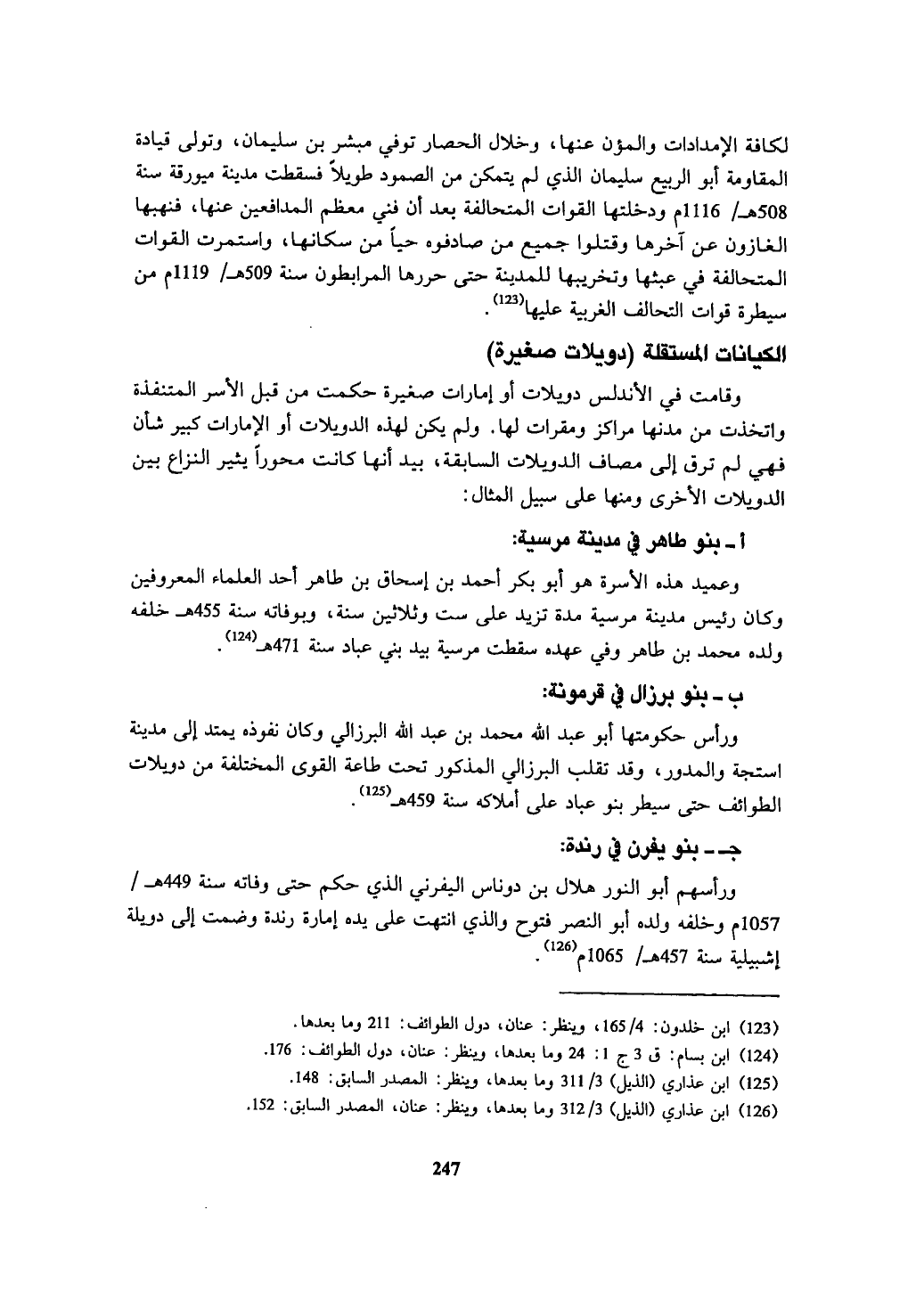 (¬123) ابن خلدون: 4/ 165، وينظر: عنان، دول الطوائف: 221 وما بعدها.