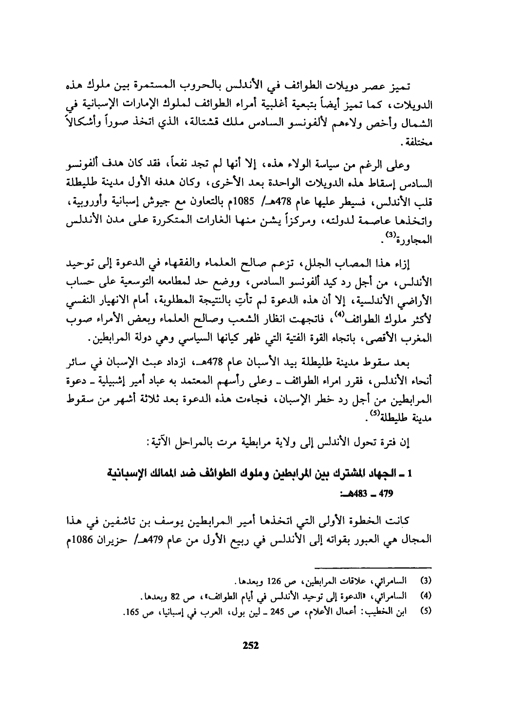 (¬4) السامرائي، " الدعوة إلى توحيد الأندلس في أيام الطوائف "، ص 82 وبعدها.