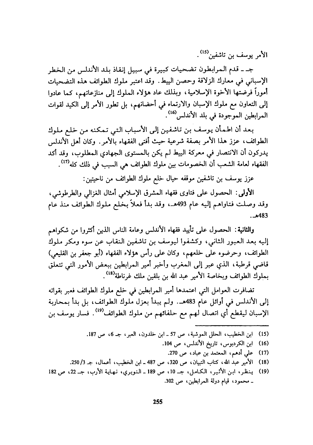(¬19) ينظر، ابن الأثير، الكامل، ج 10، ص 189 - النويري، نهاية الأرب، ج 22؛، ص 182 - محمود، قيام دولة المرابطين، ص 302.