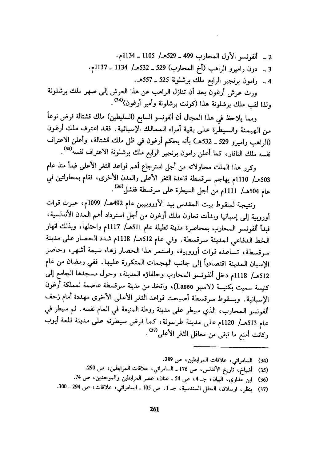 (¬34) السامرائي، علاقات المرابطين، ص 289.