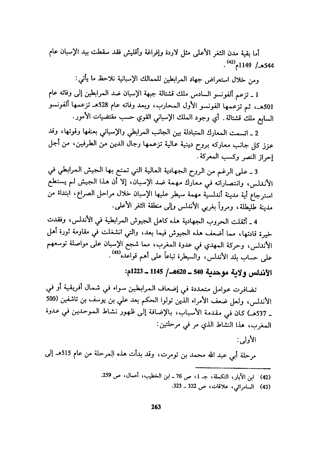أما بقية مدن الثغر الأعلى مثل لاردة وإفراغة وأقليش فقد سقطت بيد الإسبان عام 544 هـ/1149 م (¬42).