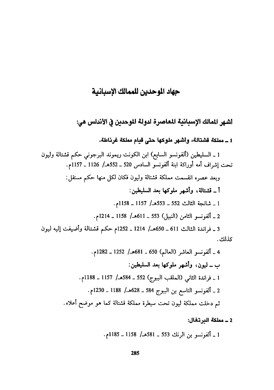 3 - فراندة الثالث 611 - 650 هـ/1214 - 1252 م حكم قشتالة وأضيفت إليه ليون كذلك.