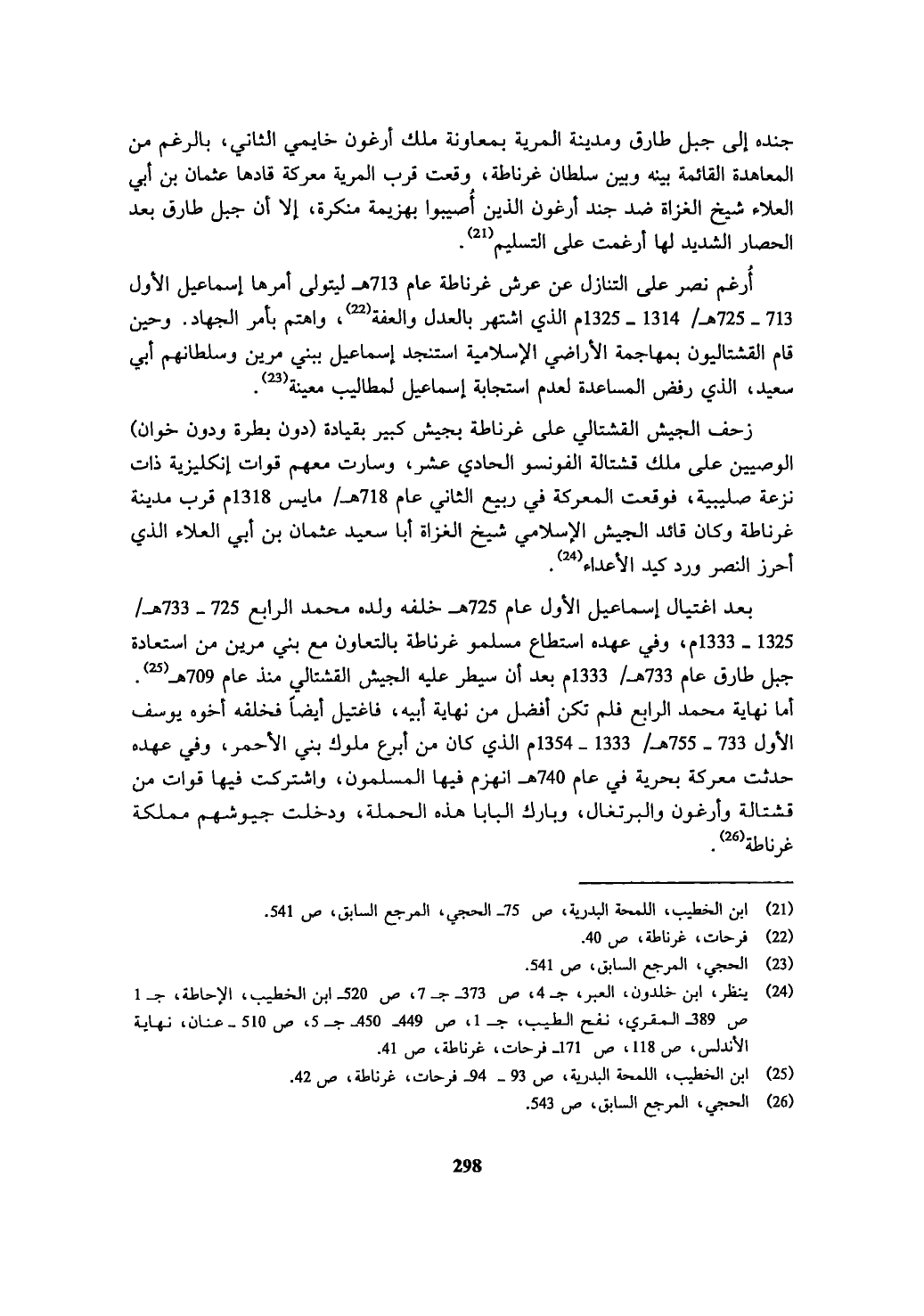 (¬24) ينظر، ابن خلدون، العبر، ج 4، ص 373 - ج 7، ص 520 - ابن الخطيب، الإحاطة، ج 1 ص 389 - المقري، نفح الطيب، ج 1، ص 449 - 450 - ج 5، ص 510 - عنان، نهاية الأندلس، ص 118، ص 171 - فرحات، غرناطة، ص 41.