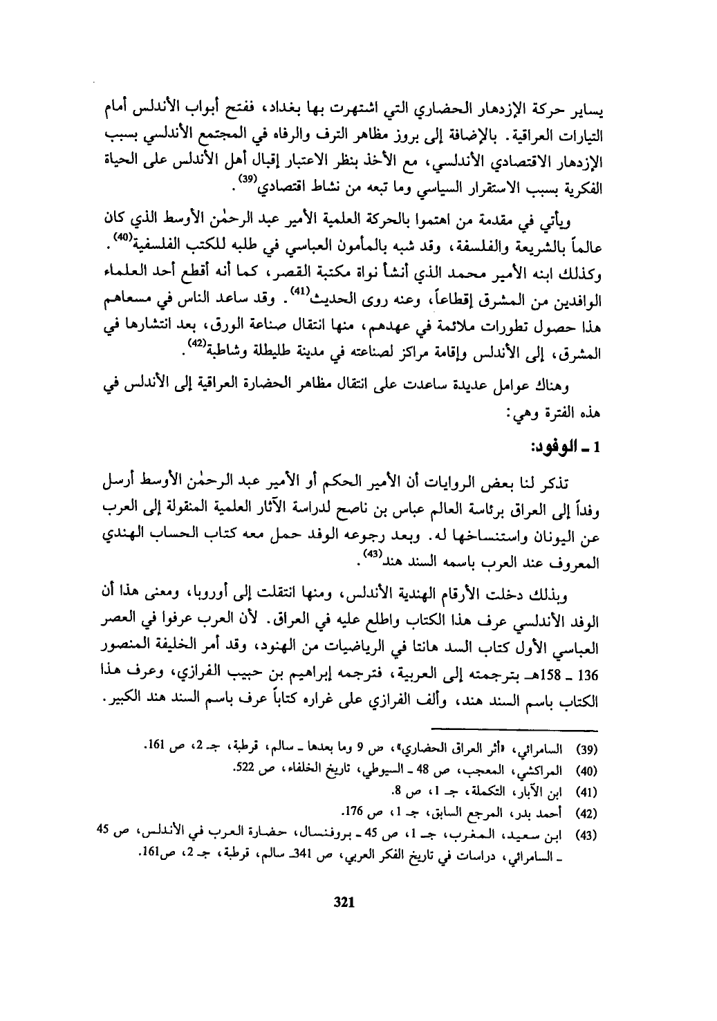 (¬39) السامرائي، " أثر العراق الحضاري "، ص 9 وما بعدها - سالم، قرطبة، ج 2، ص 161.