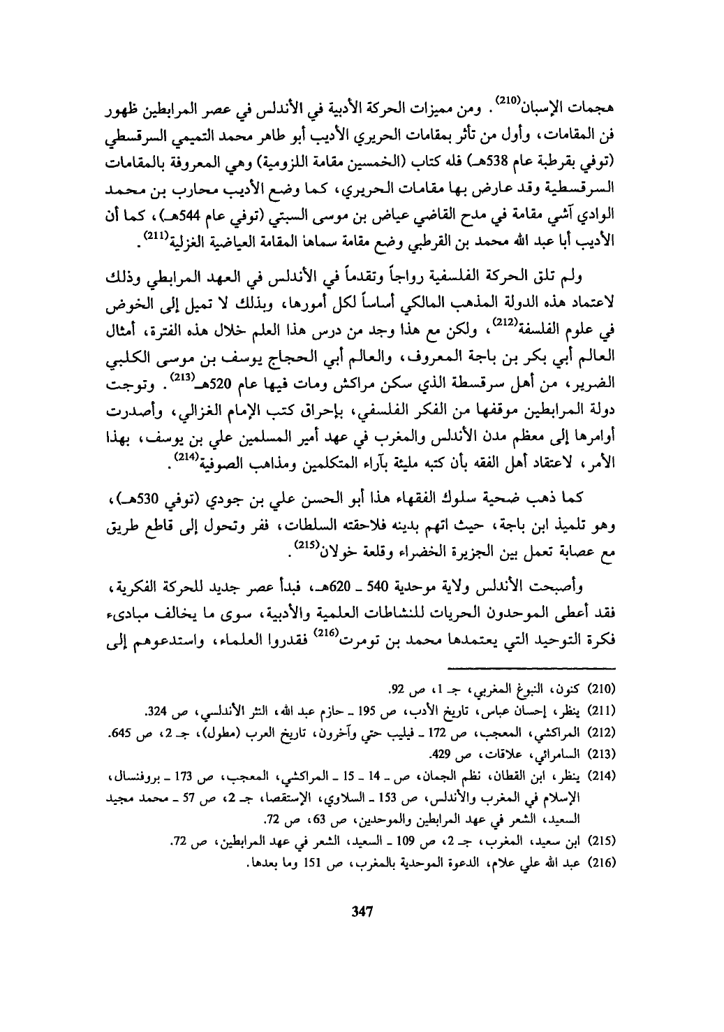 (¬214) ينظر، ابن القطان، نظم الجمان، ص 14 - 15 - المراكشي، المعجب، ص 173 - بروفنسال، الإسلام فى المغرب والأندلس، ص 153 - السلاوي، الإستقصا، ج 2، ص 57 - محمد مجيد السعيد، الشعر في عهد المرابطين والموحدين، ص 63، ص 72.