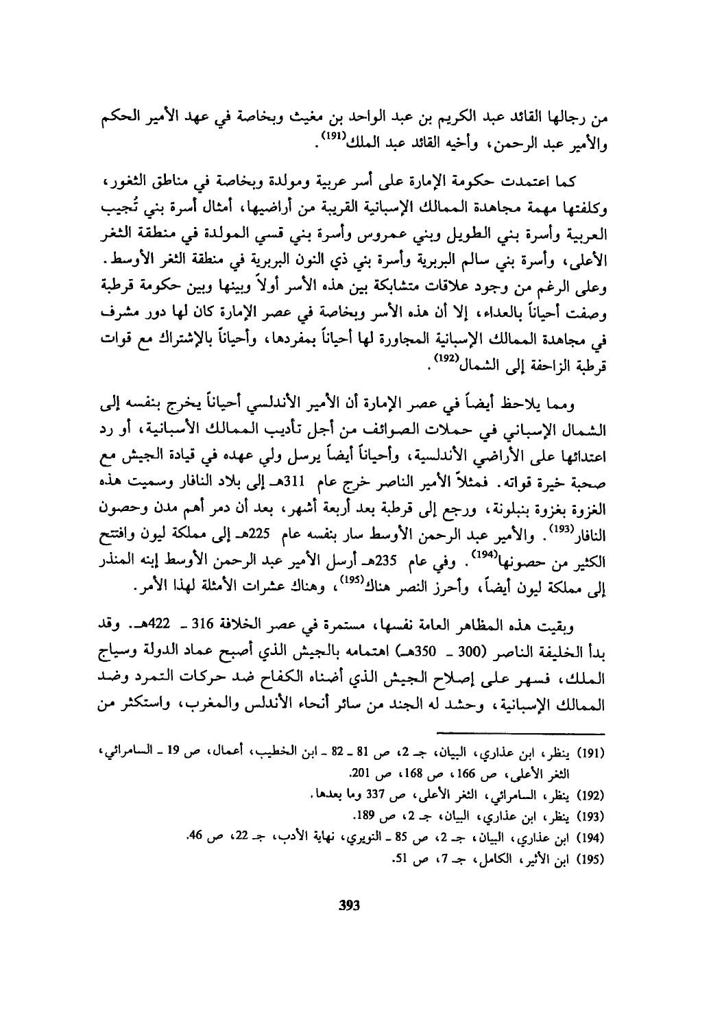 (¬191) ينظر، ابن عذاري، البيان، ج 2، ص 81 - 82 - ابن الخطيب، أعمال، ص 19 - السامرائي، الثغر الأعلى، ص 166، ص 168، ص 201.