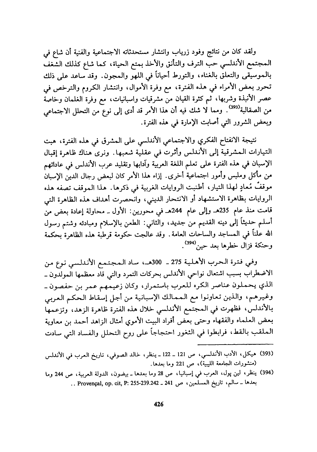(¬394) ينظر، لين بول، العرب في إسبانيا، ص 28 وما بعدها - بيضون، الدولة العربية، ص 244 وما بعدها - سالم، تاريخ المسلمين، ص 241 - 242. Provençal, op. cit; p: 255-239