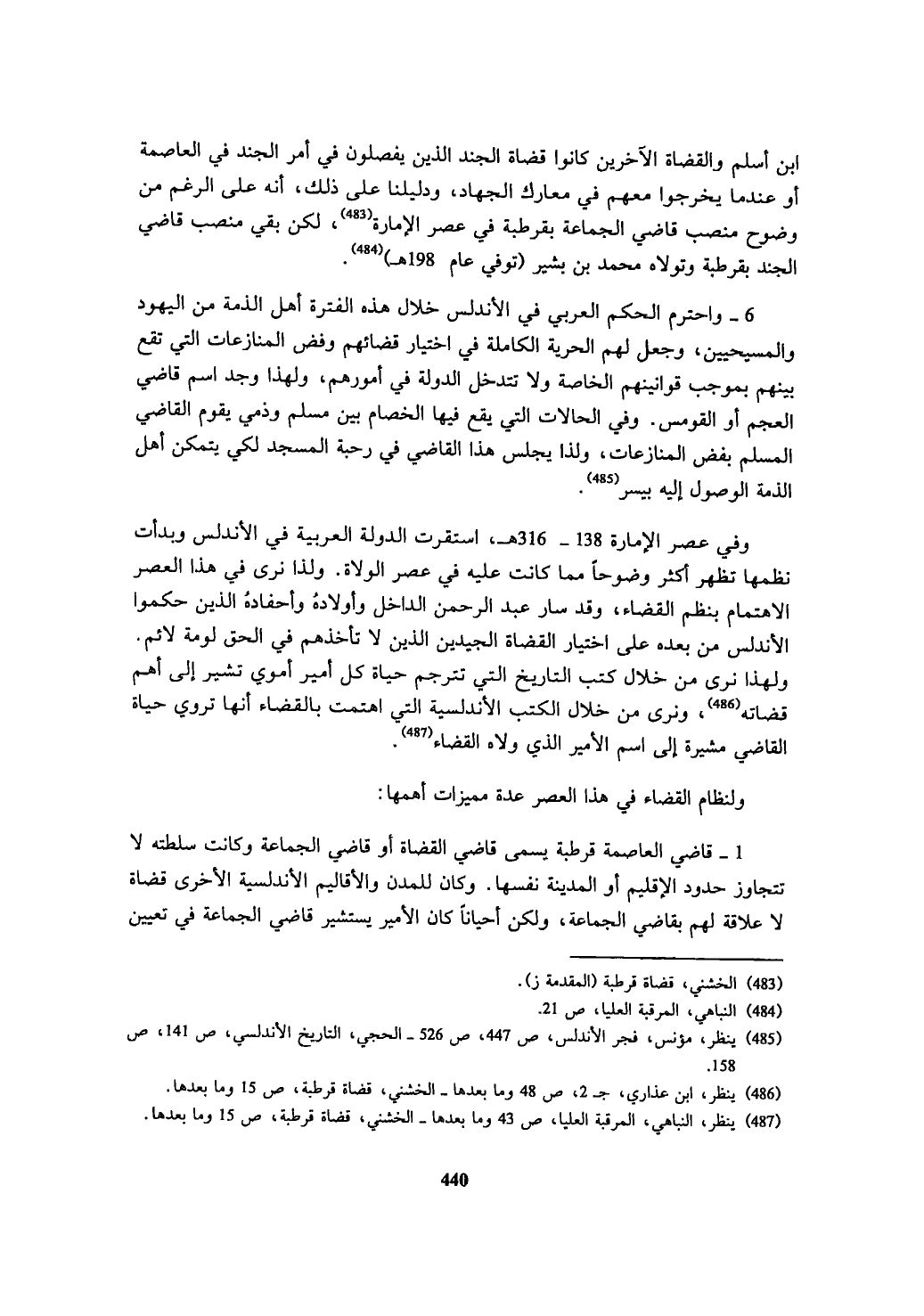(¬487) ينظر، النباهي، المرقبة العليا، ص 43 وما بعدها - الخشني، قضاة قرطبة، ص 15 وما بعدها.