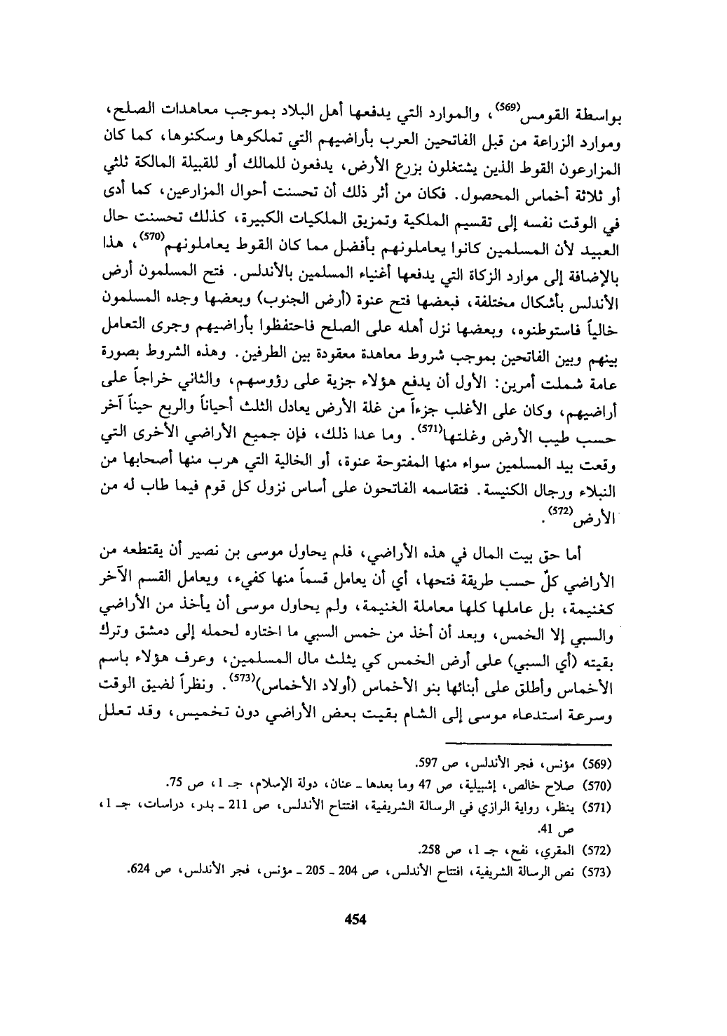 (¬571) ينظر، رواية الرازي في الرسالة الشريفية، افتتاح الأندلس، ص 211 - بدر، دراسات، ج 1، ص 41.