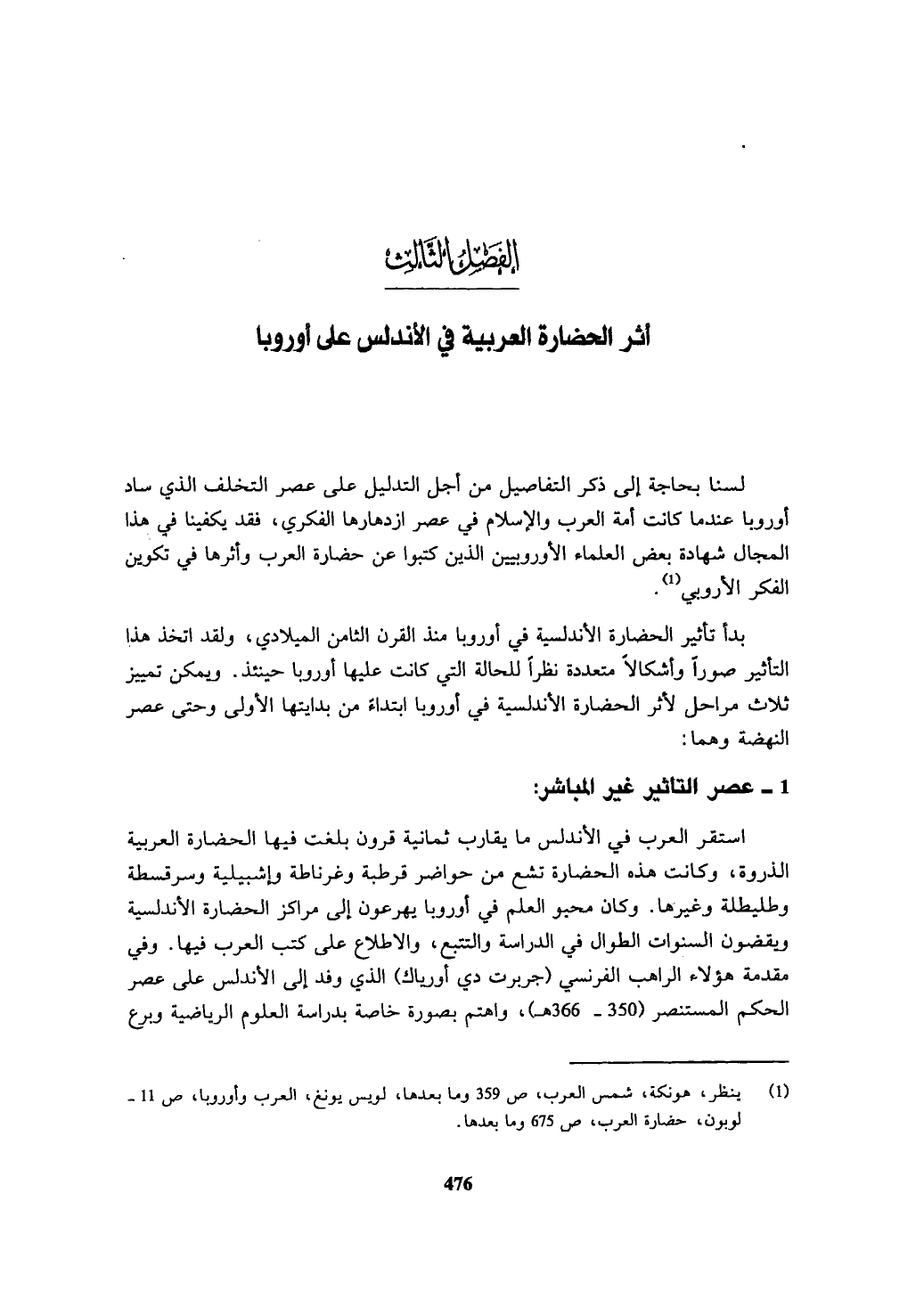 (¬1) ينظر، هونكة، شمس العرب، ص 359 وما بعدها، لويس يونغ، العرب وأوروبا، ص 11 - لوبون، حضارة العرب، ص 675 وما بعدها.