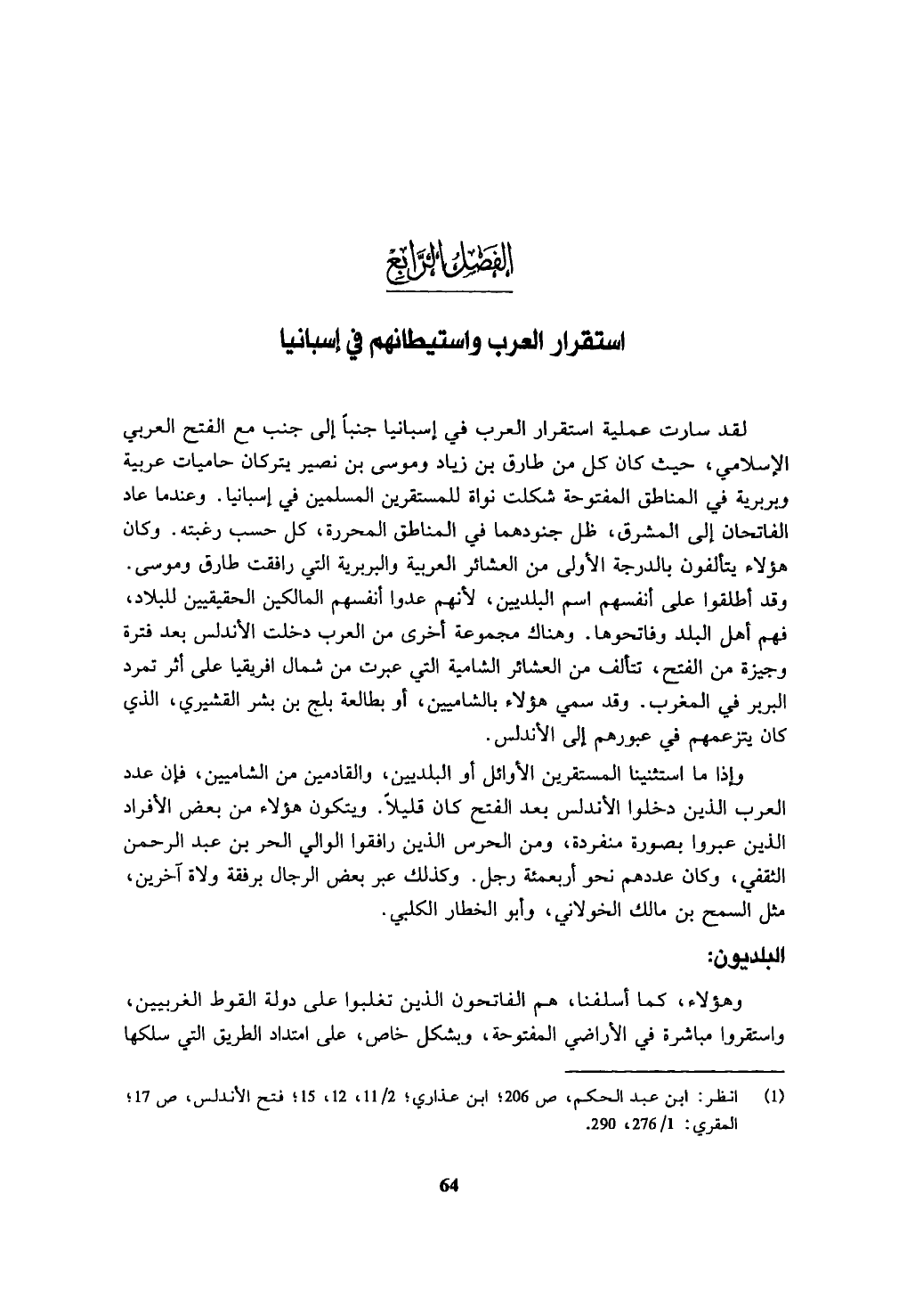 (1) انظر: ابن عبد الحكم، ص 206؛ ابن عذاري؛ 2/ 11، 12، 15؛ فتح الأندلس، ص 17؛ المقري: 1/ 276، 290.