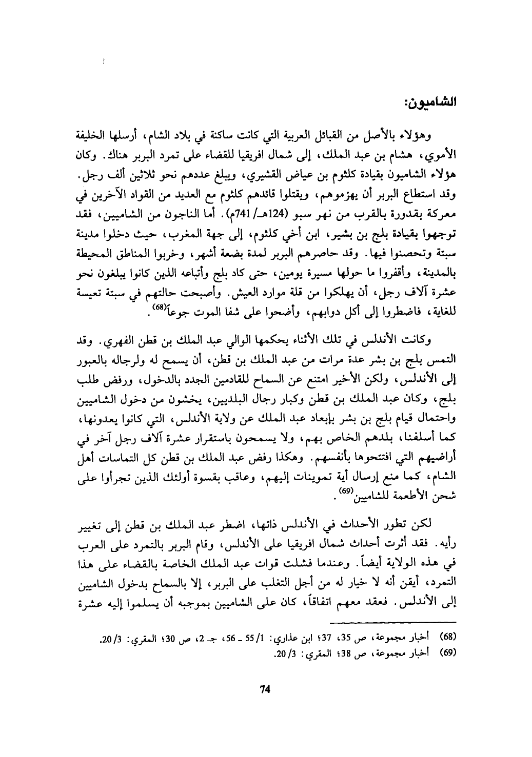 (¬68) أخبار مجموعة، ص 35، 37؛ ابن عذاري: 1/ 55 - 56، ج 2، ص 30؛ المقري: 3/ 20.