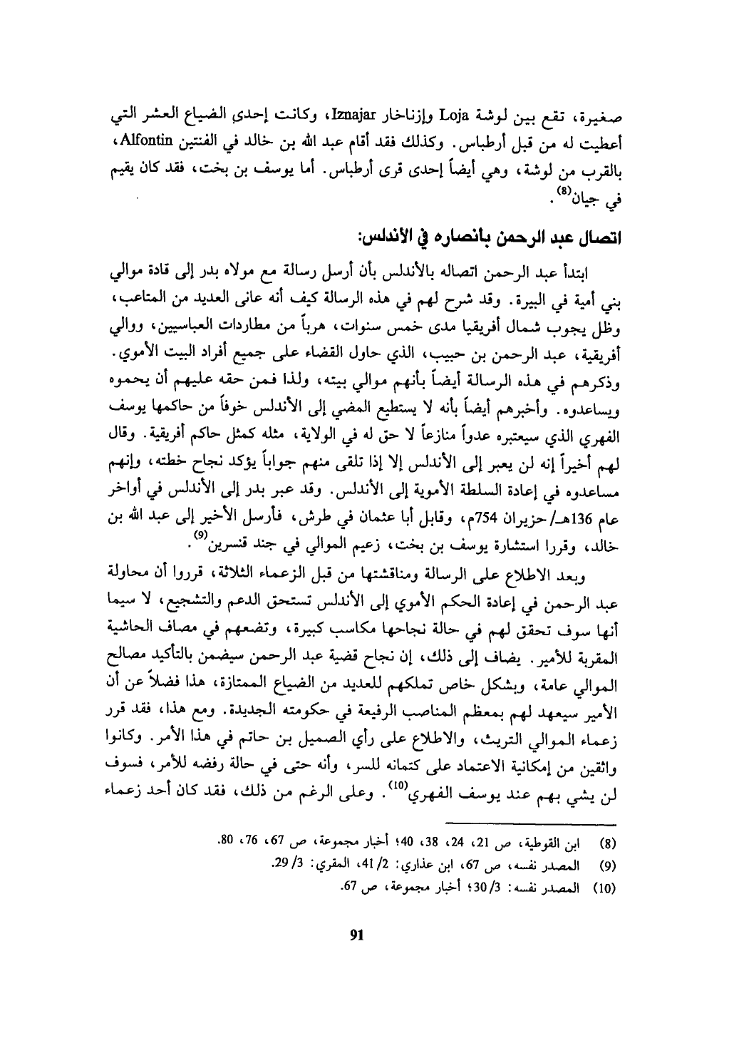 (¬9) المصدر نفسه، ص 67، ابن عذاري: 2/ 41؛ المقري: 3/ 29.
