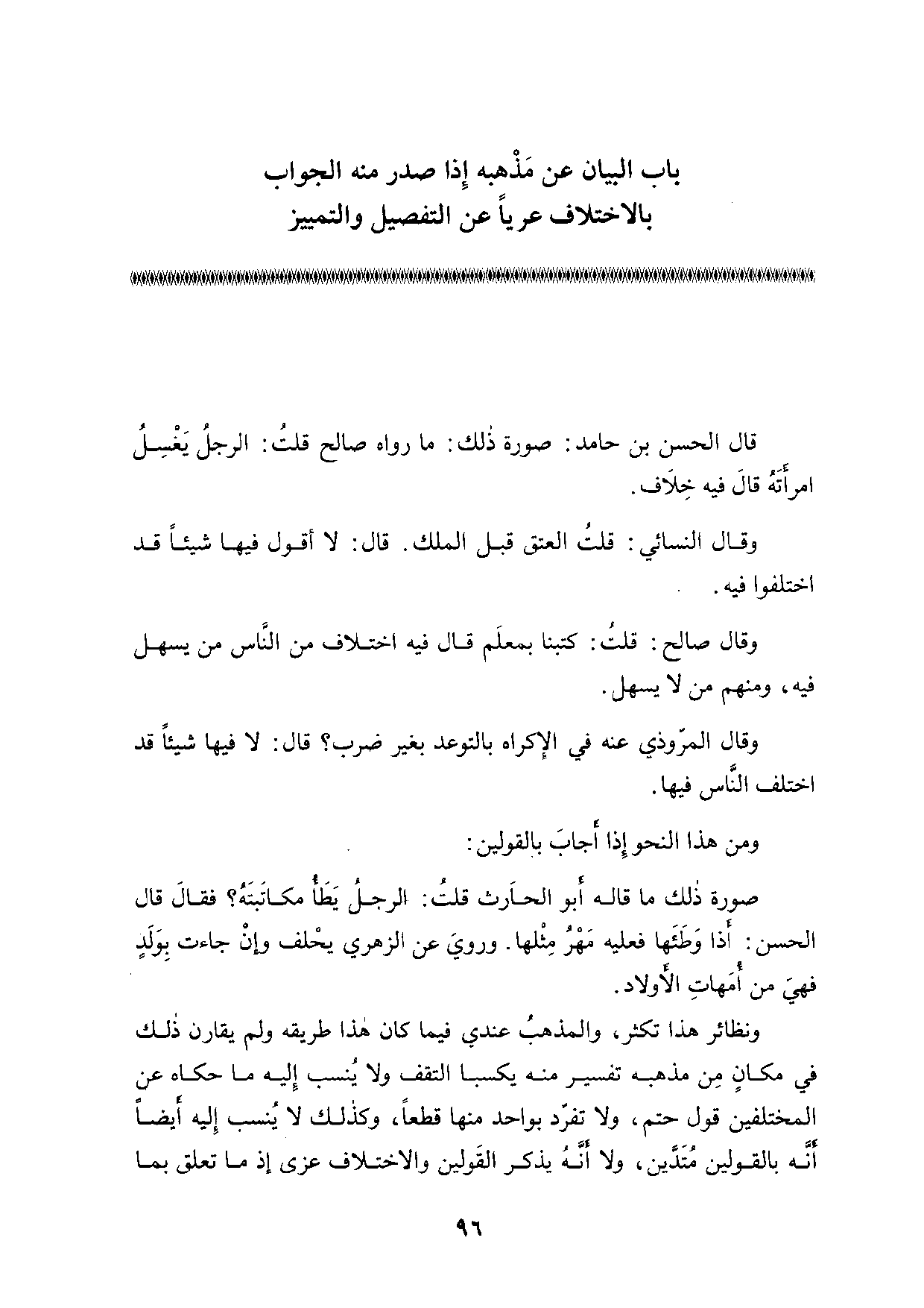 باب البيان عن مذهبه إذا صدر منه الجواب بالاختلاف عريا عن التفصيل والتمييز